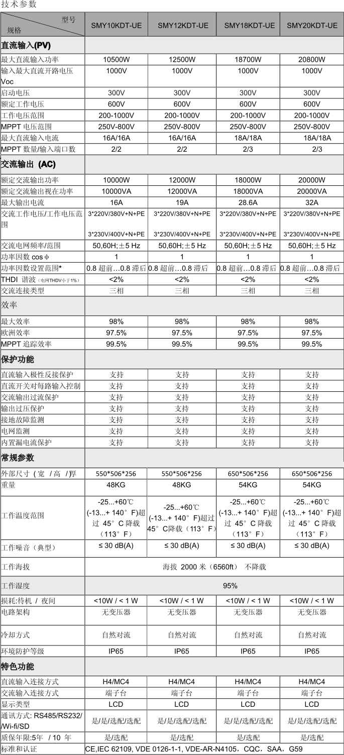 該型號輸入為雙路MPPT,輸出為三相交流電。