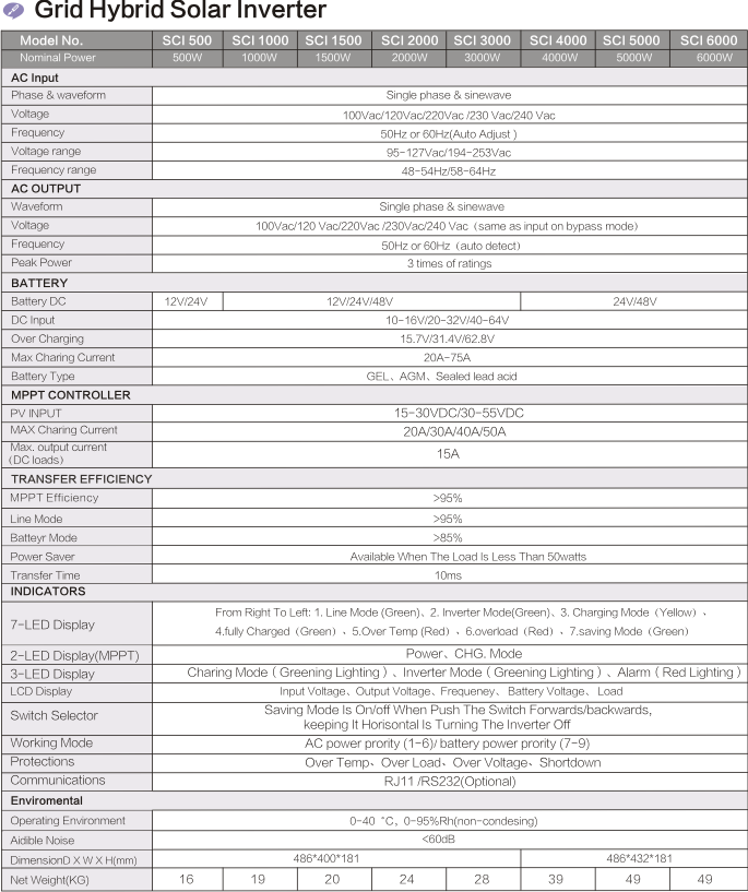 ● 專業的離網式太陽能系統解決方案:集大功率逆變器和太陽能控制器于一體
